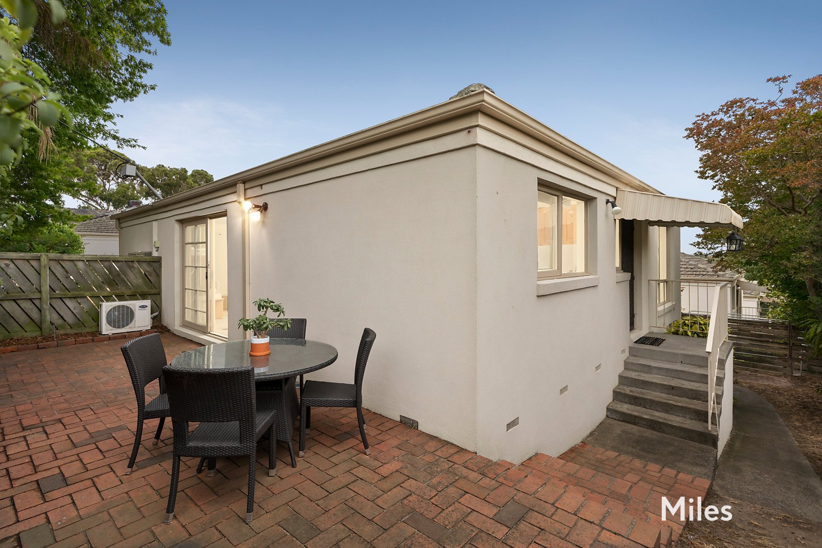 A superbly-proportioned living and dining room with split-system heating/cooling and a ceiling fan offers exceptional everyday comfort that's further enhanced by sliding doors opening directly out to a high-fenced private courtyard garden that sunny and peaceful for relaxed enjoyment, wraps around to the rear delivering additional green outlooks.