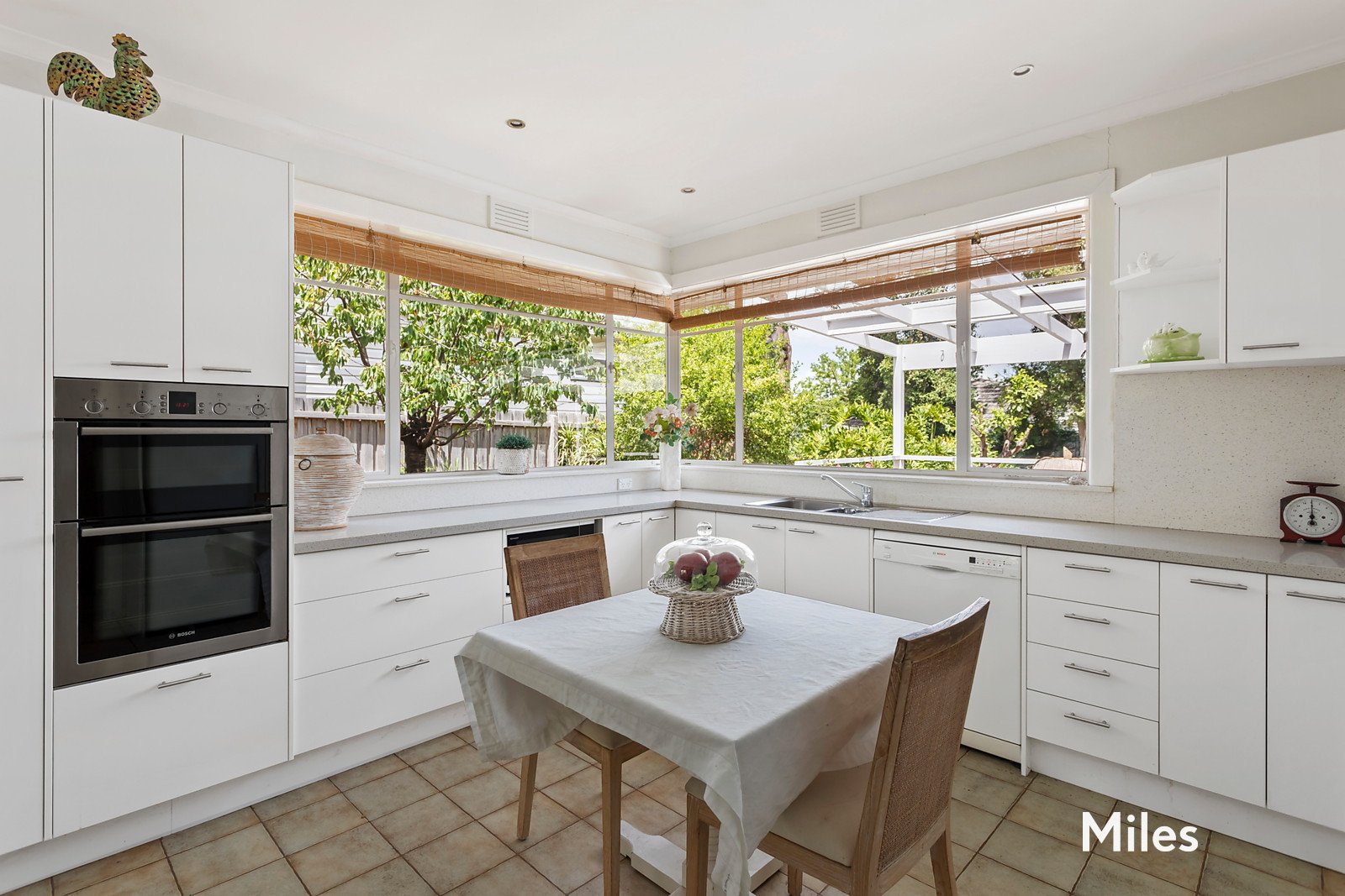 The bright refurbished kitchen features scenic vistas of the back garden, as well as an abundance of stone bench space, Bosch appliances, and plenty of space for casual meals. Both bedrooms are very well-sized and sit not far from the renovated bathroom with walk- in rain shower. The rear pergola deck will be bliss for summer BBQs, with the surrounding private garden giving you greenery that will be welcomed.