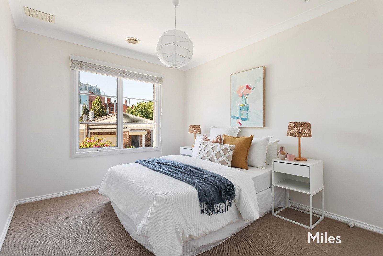 Complemented by a fabulous bathroom with a separate bathtub and shower, first-floor accommodation comprises of three bright bedrooms with built-in robes, a study nook, and a large main bedroom with an ensuite and a view through to the city skyline.