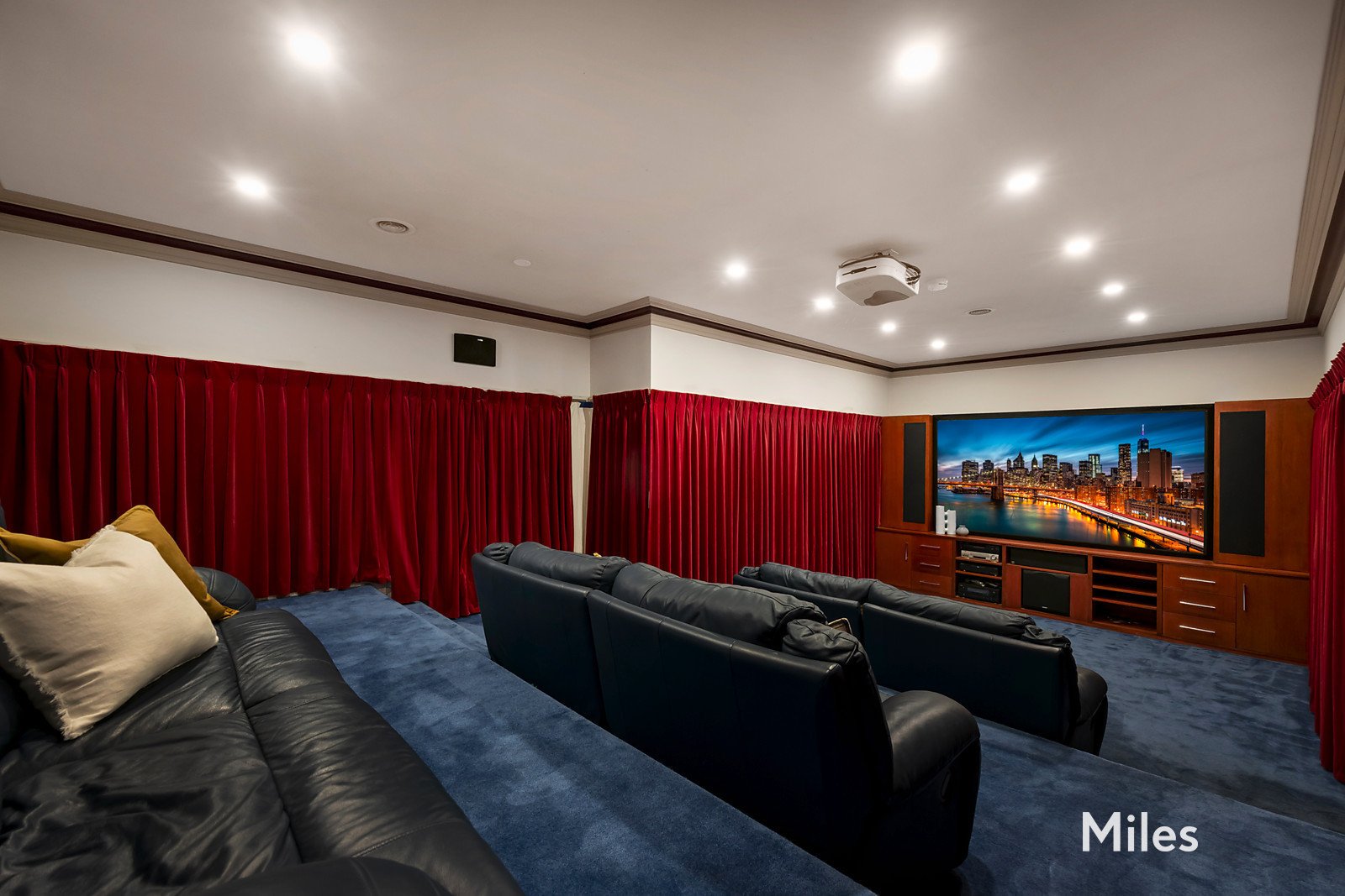 A flexible front room with open fireplace provides the ideal setting for a formal sitting room or a private home office, enhanced by its own external entry-perfect for those working from home. Adding to the home's appeal is a dedicated theatre room, ideal for movie nights with family and friends.