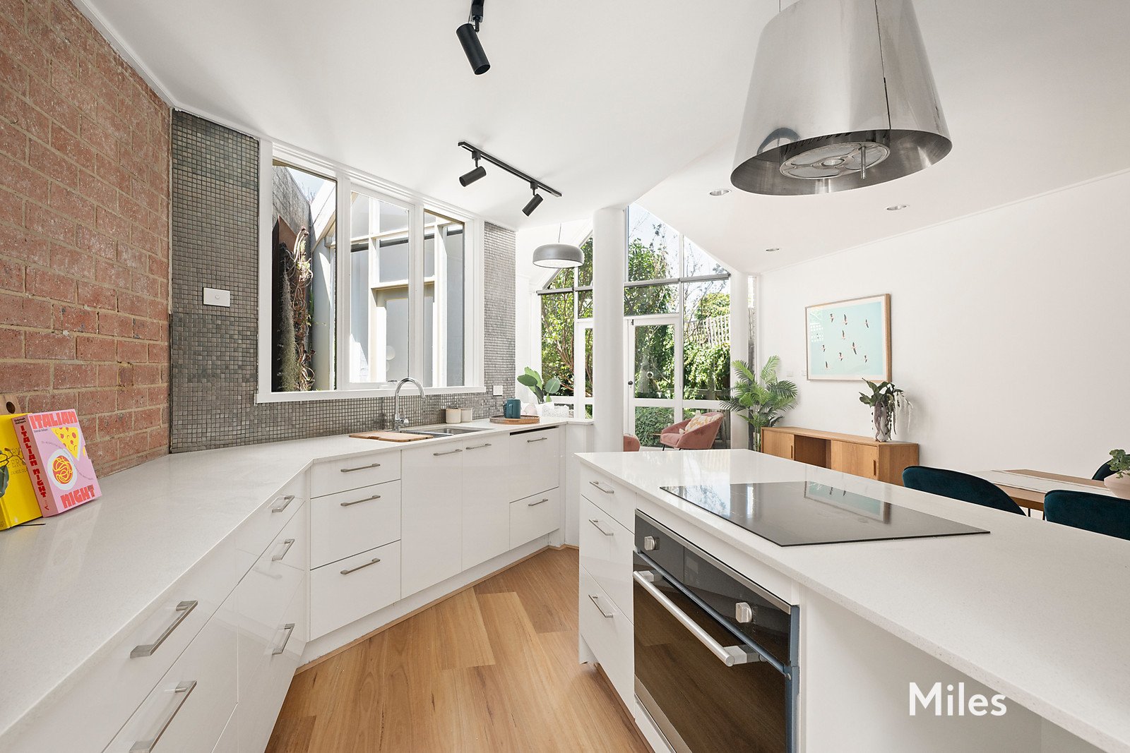 The traditional terrace layout has been transformed by a stunning rear extension, where high ceilings and expansive glazing flood the interior with natural light and create a seamless connection to the outdoors. Engineered timber flooring flows through to an impressive open-plan living and dining zone, anchored by a sleek designer kitchen featuring crisp white cabinetry, abundant storage, a large oven, and induction cooktop - perfectly suited to both daily living and entertaining on a grand scale.
