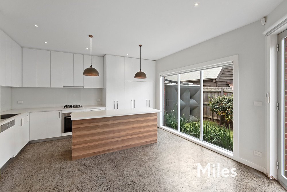 Downstairs offers loads of natural light with kitchen / dining area opening to a private courtyard. Kitchen features polished concrete floor, stone benchtops, gas cooktop, electric oven, dishwasher, split system and ample storage. The living room has polished flooring and split system plus a downstairs powder room.