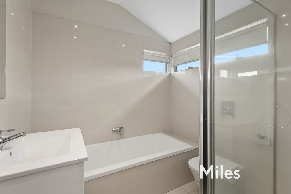 Upstairs you will find two good sized bedrooms - main with walk-in robe. Timber flooring and split system in each bedroom. Central bathroom with separate shower and bath.