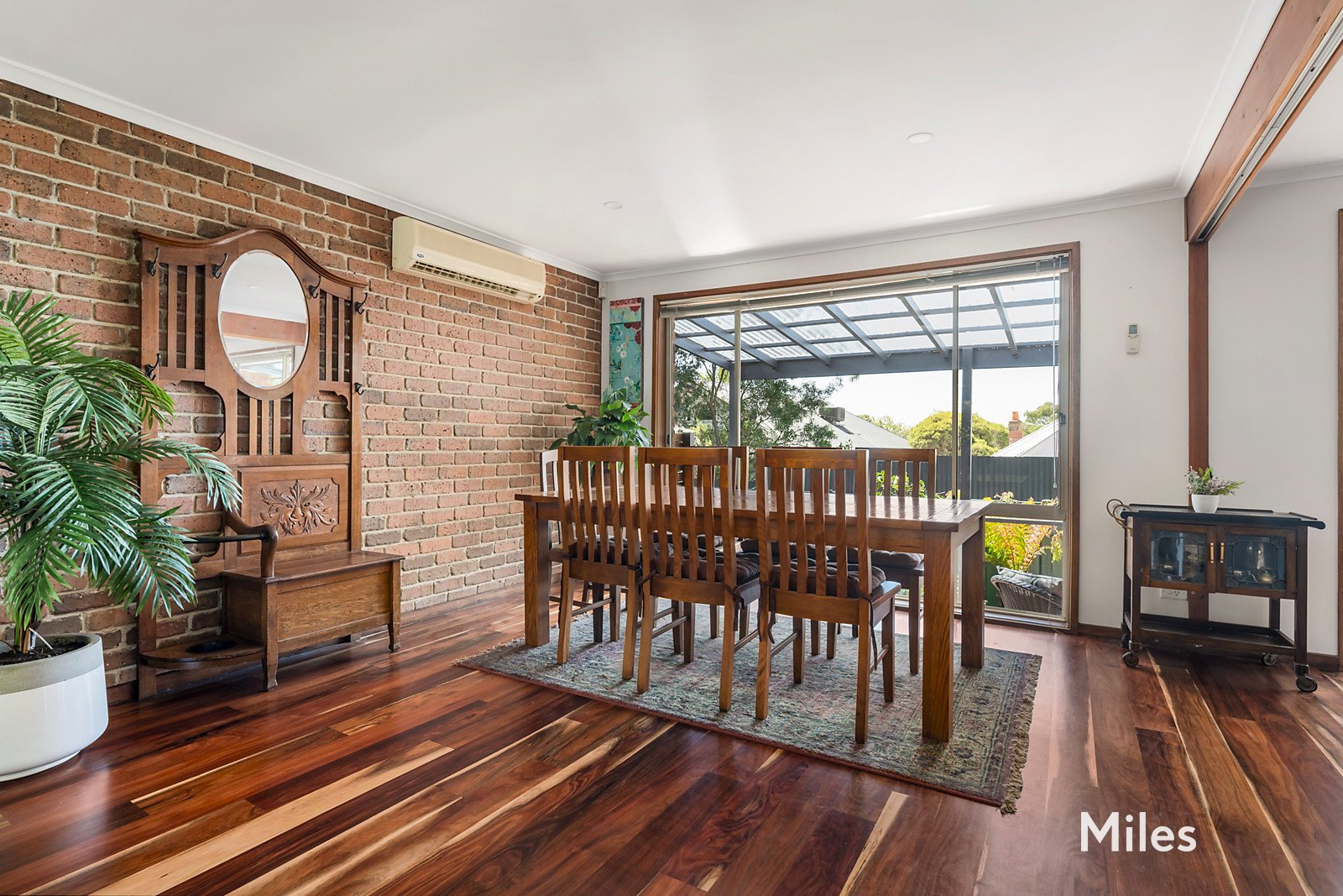 A deep, free-flowing and light-filled living and dining room with big window outlooks, exposed brickwork and split-system air-conditioning extends to a bright meals area adjoining a superbly-renovated kitchen that features Euromaid black-glass cooking appliances, Fisher & Paykel dishwasher, ample storage and sleek, shining benchtops.
