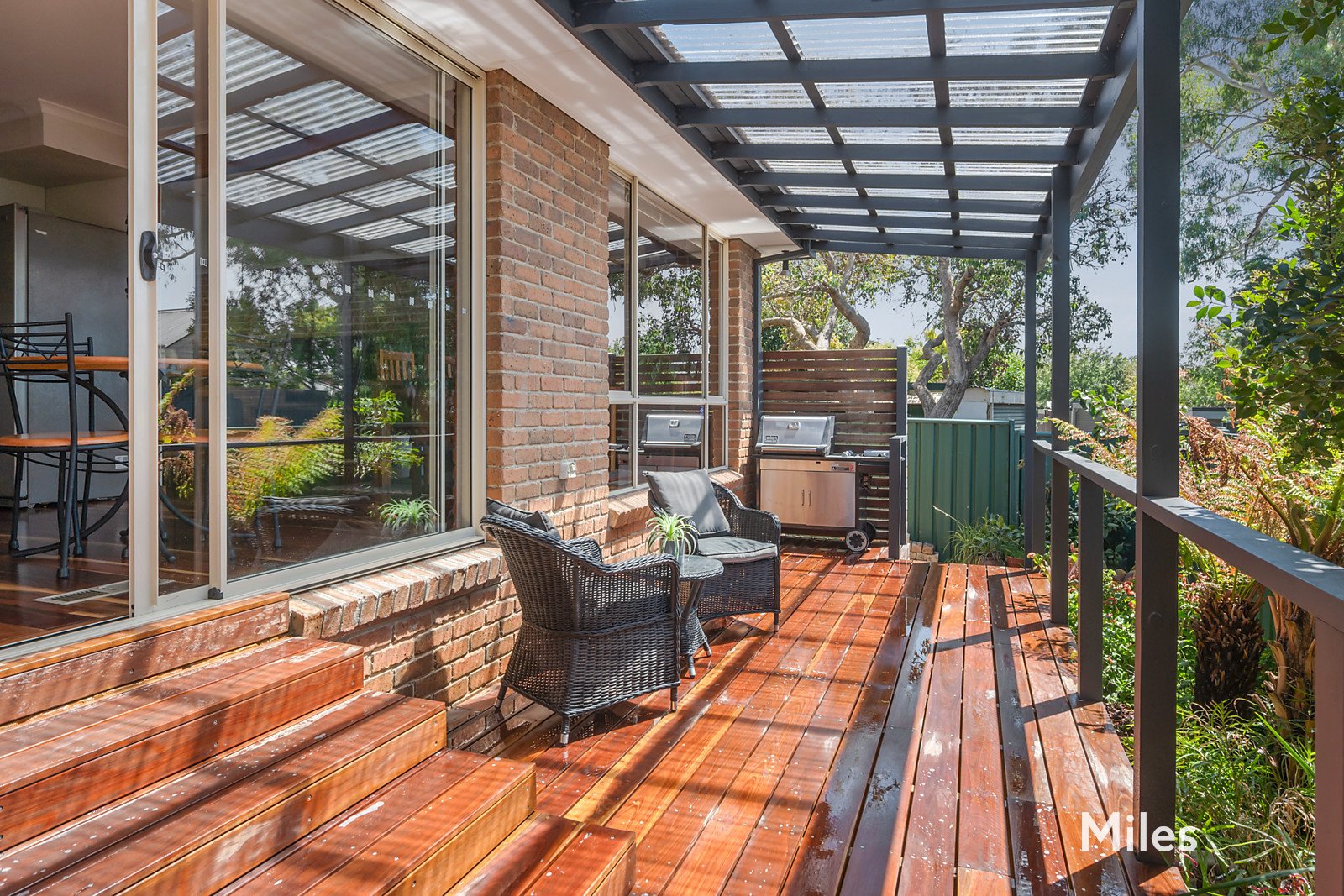 Expansive sliding doors extend the space northward underlining an easy connection between house and garden, where a huge, solid-timber undercover deck provides an inviting setting for outdoor dining and relaxed entertaining, amid a secluded low-upkeep, north-facing garden courtyard (ROW).