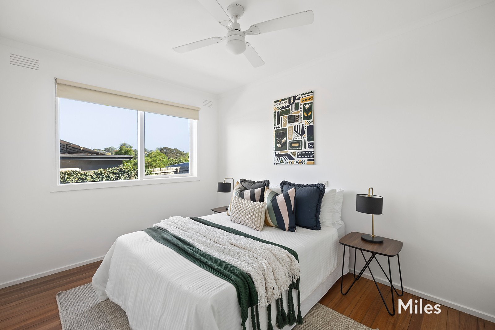 Three perfectly-proportioned bedrooms provide excellent accommodation including a larger main with full-height built-in robes and a ceiling fan, complemented by two additional bedrooms with robes, one enjoying a front aspect and the other quietly positioned to the rear with a ceiling fan and a garden outlook.