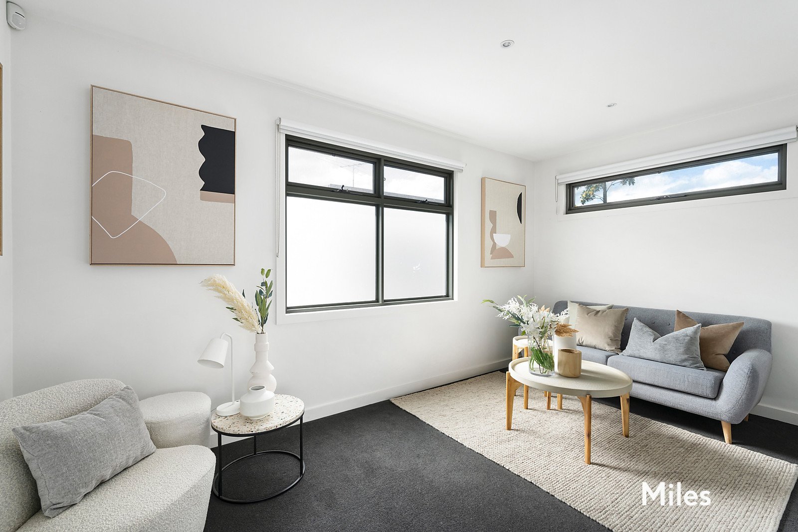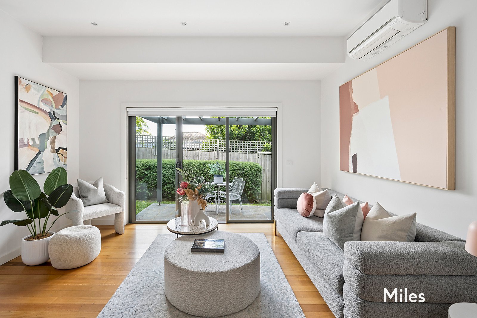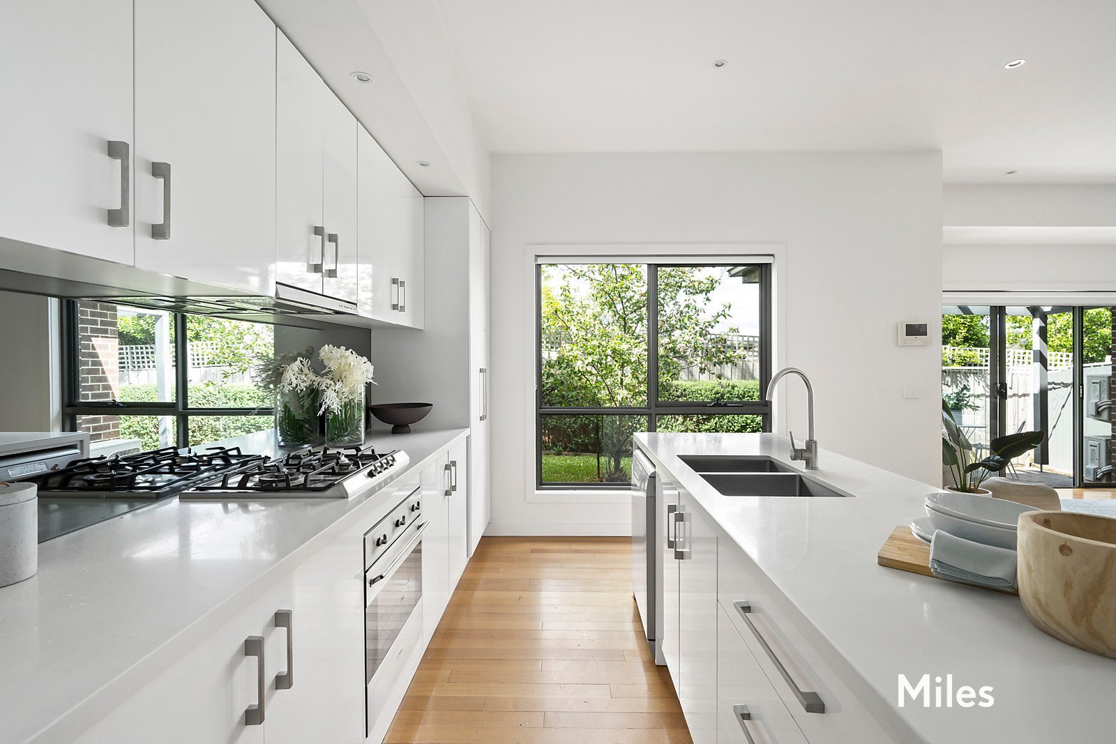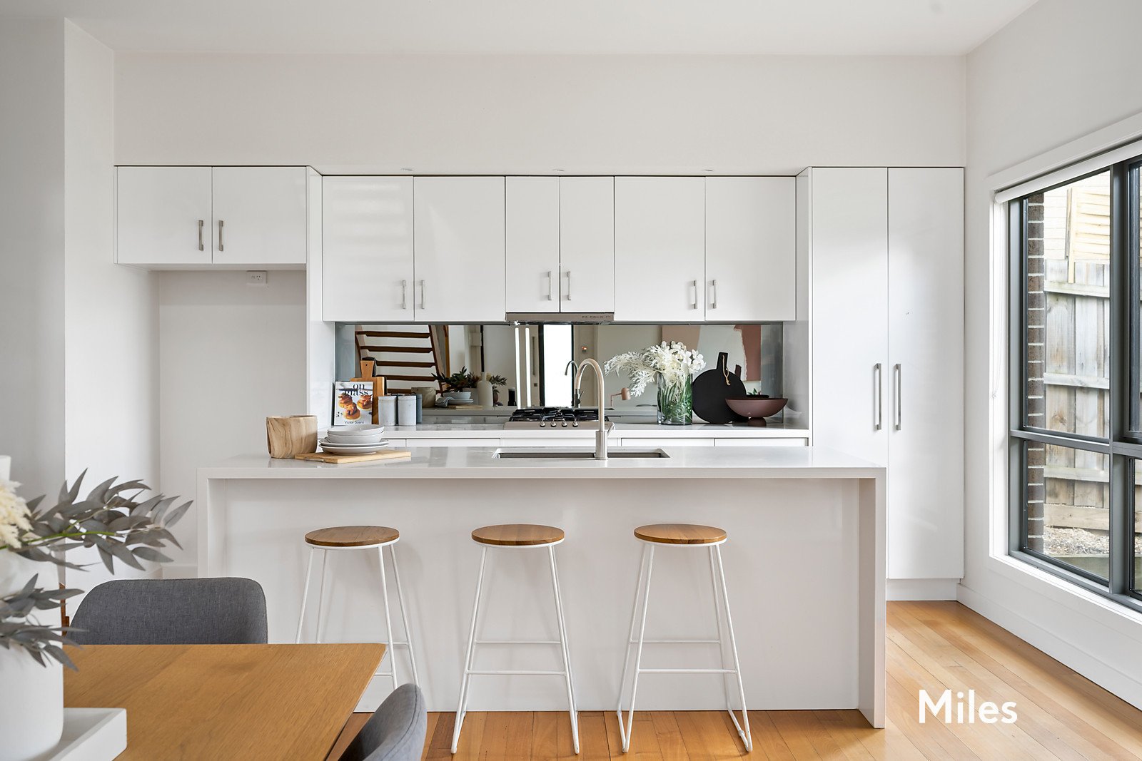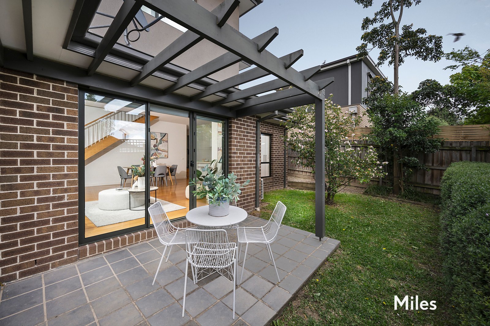 SOLD by Miles Real Estate. Freestanding in a private north-rear landscaped setting is this spacious three bedroom, 2.5 bathroom town residence that goes the extra distance to deliver the highest standards of quality, style and sophistication. A secluded oasis set quietly to the rear of a boutique block of only three, this beautifully-presented home with a glorious garden backdrop is superbly appointed for a sought-after executive lifestyle featuring double-glazing, split-system heating/cooling, video intercom and security alarm. A ground-floor main bedroom with a walk-in robe and chic ensuite introduces an impressive interior layout where polished hardwood floorboards line an open-plan dining and living zone with sliding doors to a paved alfresco terrace for amazing garden-set entertaining. Further is a large gourmet kitchen with its shining stainless-steel Smeg appliances and stone benchtops including a waterfall island before a powder room and a separate laundry. A second living area upstairs that's filled with natural light enhances the home's versatility and leads to two additional bedrooms with mirror built-in robes and an immaculate family-size bathroom. Other attributes include a lock-up shed, rainwater tank, remote-control internal double garage and an extra car parking space at the front door. This flawless light-filled, low-maintenance sanctuary offers coveted convenience for downsizers and young families near the Rosanna and Macleod Villages, schools, train stations and the peaceful Rosanna Parklands.