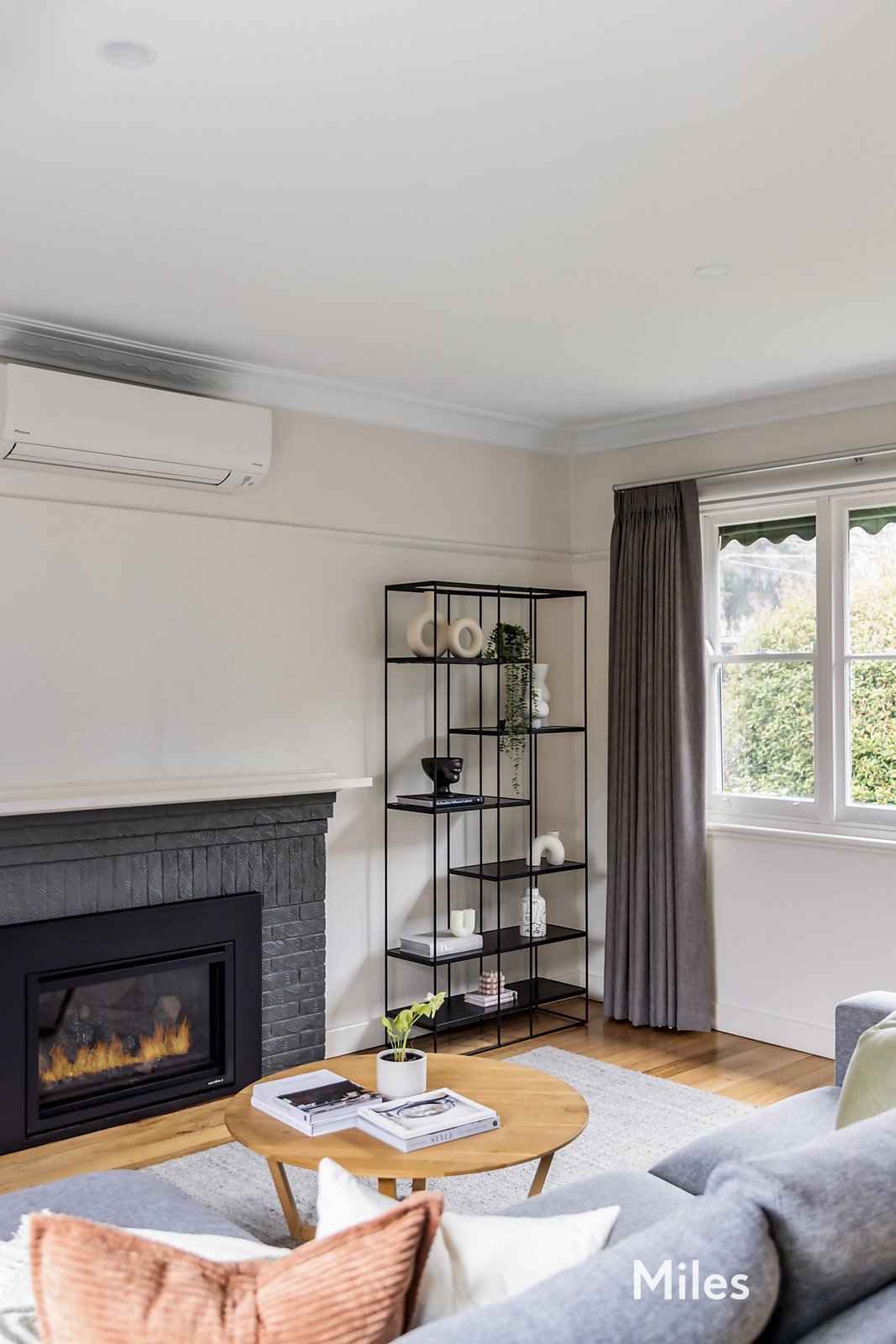 Striking timber floors make a statement throughout much of the home, especially in the light-filled and generous central living area which offers a designated lounge with gas log fireplace, and a dining space which is ready for everyday meals. The kitchen delights with all the modern bells and whistles, including luxe stone, soft-close drawers, and trendy black Technika appliances (induction cooking).