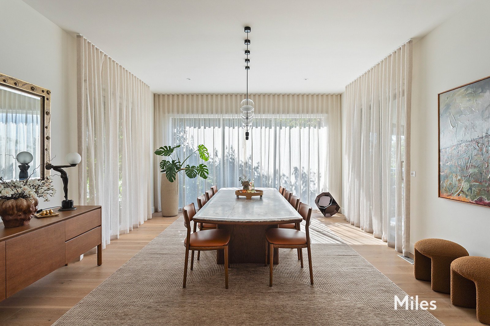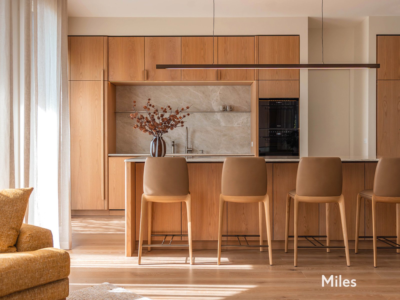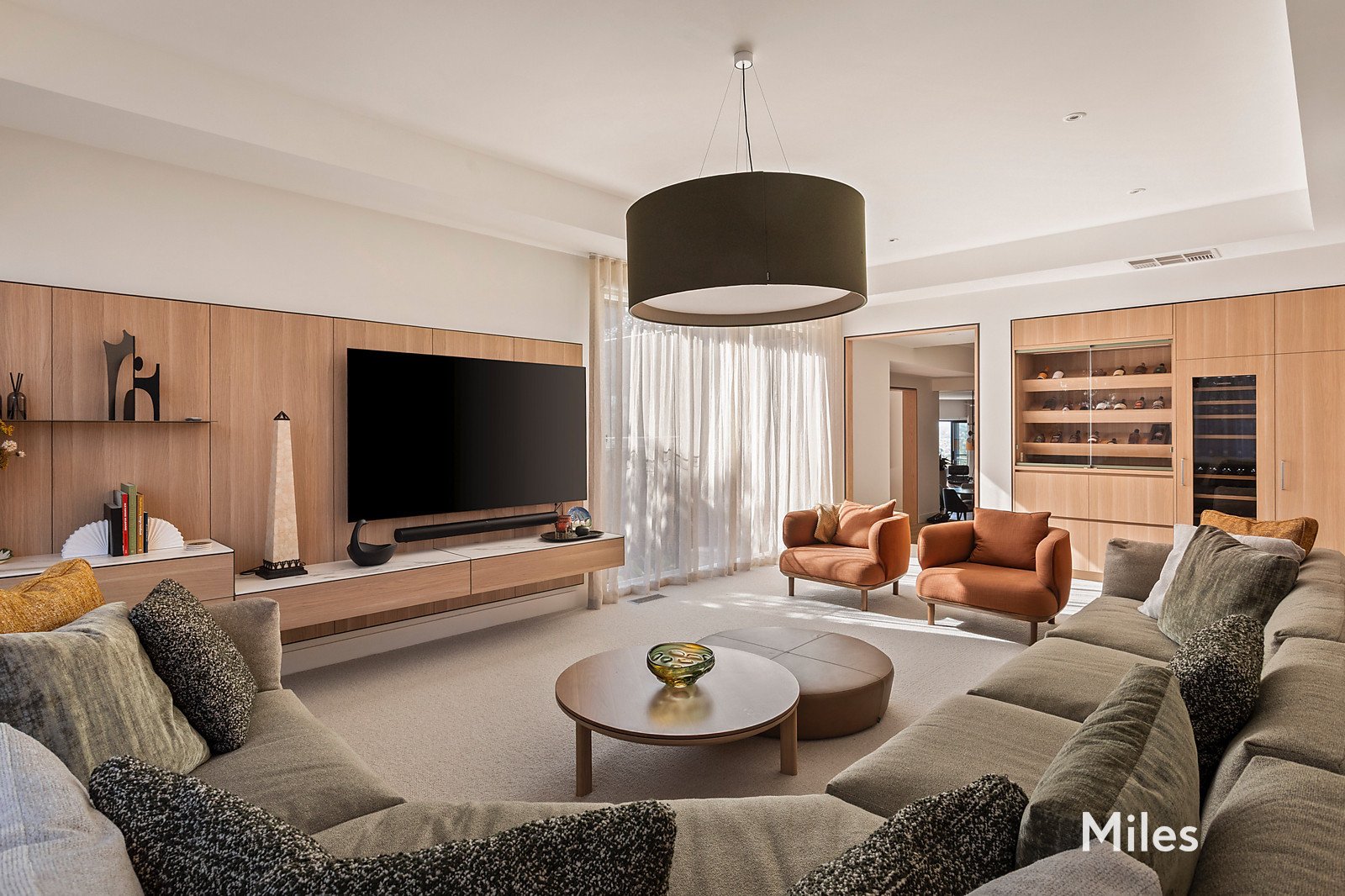 Inside, expansive living and entertaining domains unfold with effortless flow. The showpiece Cantilever Edit kitchen is appointed with premium Miele appliances, Bora induction cooktop, Smeg steam oven and integrated Liebherr refrigeration, all framed by bespoke American oak cabinetry and exquisite marble surfaces. A generous home office, formal and informal living areas, and seamless indoor-outdoor integration ensure flexibility for both grand entertaining and everyday living.