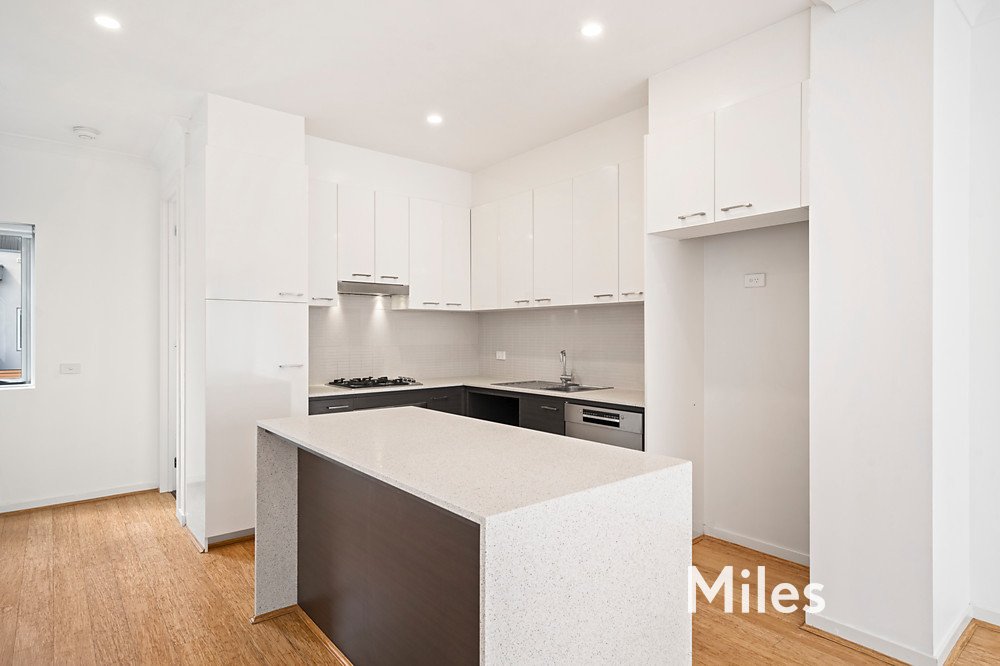 A generously sized second bedroom with built in robes, Study downstairs, perfect for working from home. A vast open plan living domain awash with natural light captures the essence of modern living with its warm timber flooring, flowing sense of space, sleek kitchen with dishwasher, gas cooking and electric oven. Direct access to an entertaining balcony, while that luxury of space extends to the two oversized bedrooms upstairs.