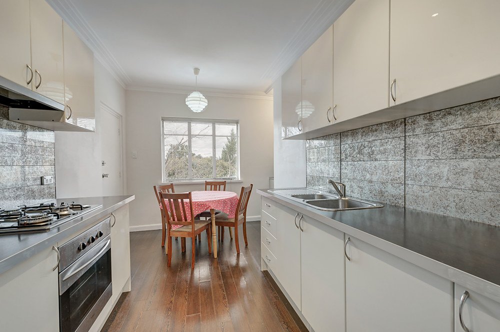 Filled with light and featuring original late Deco cabinetry, three split system heating and cooling units and excellent cross-flow ventilation, this appealing property incorporates two double bedrooms with original built-in robes, a well-proportioned living room, terrazzo-floored bathroom/laundry and fully renovated kitchen/meals.